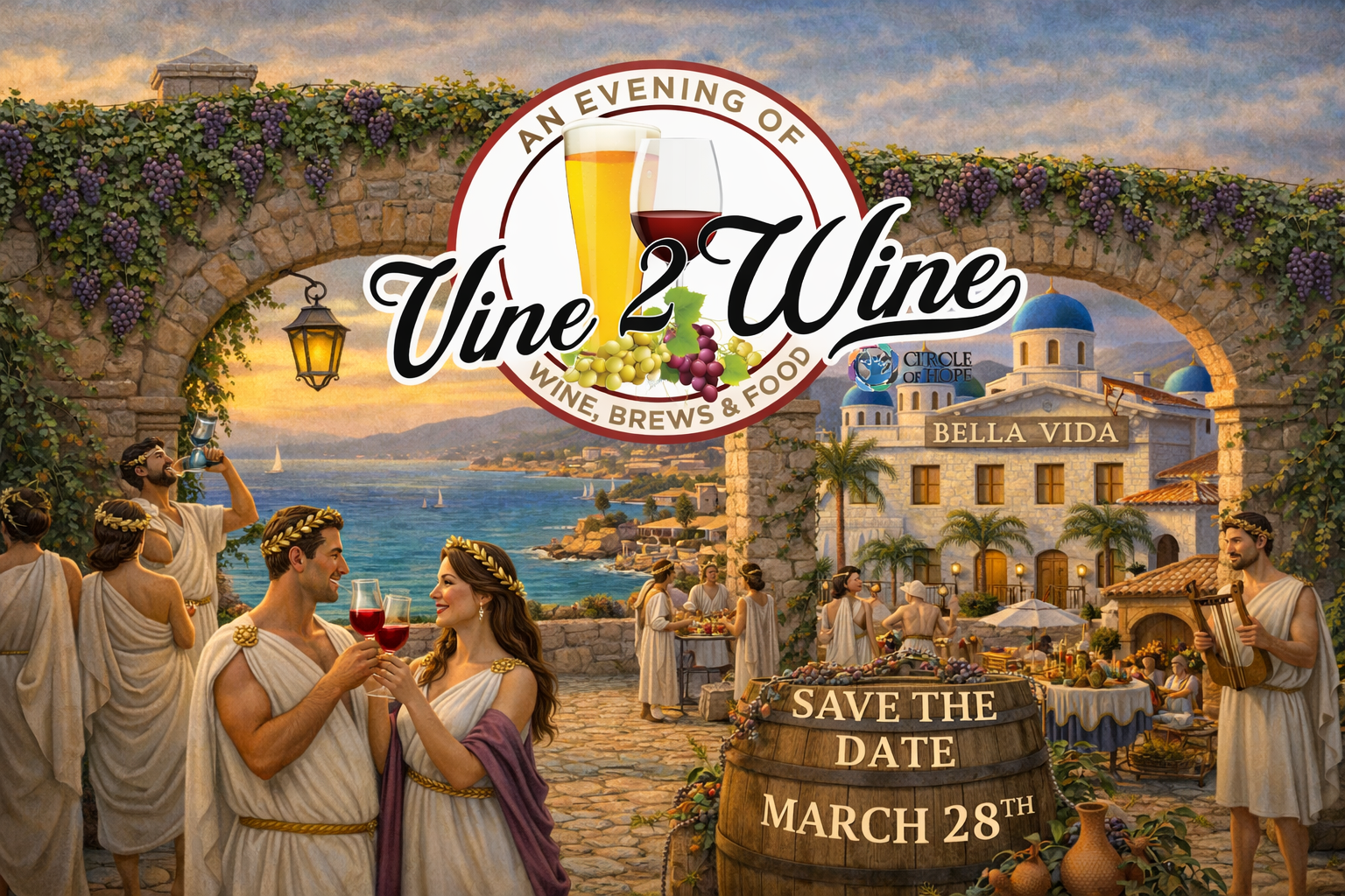 This year’s theme, Vine2Wine: A Mediterranean Toga Affair, invites guests to step into an evening inspired by sun soaked vineyards, coastal elegance, and timeless celebration. Flowing togas, candlelit tables, curated wine tastings, chef driven pairings, and live entertainment create a warm and immersive atmosphere.